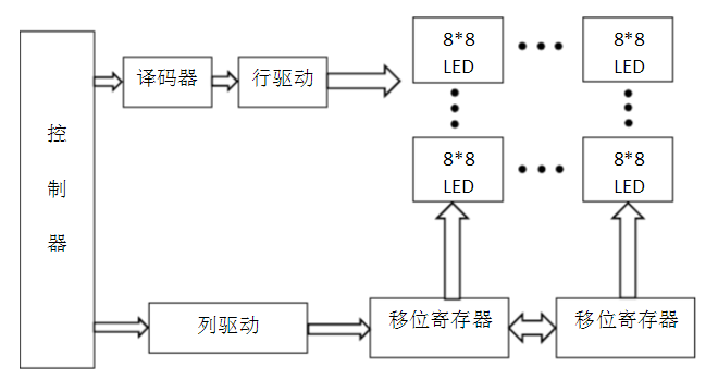 The column driver circuit and the row driver circuit of the LED display are generally controlled by a single chip microcomputer, and the commonly used single chip microcomputer is the MCS51 series. The content displayed on the LED display is generally stored in the external data memory of the microcontroller in the form of a font. The font is an 8-bit binary number.