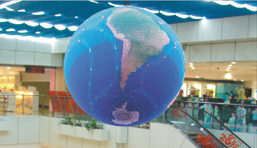LED球形顯示屏能夠實現(xiàn)360度的可視角度,全方位的播放視頻,各個角度都能感受到良好的視覺效果,沒有平面視角的問題,并且能夠根據(jù)具體需求將球形素材直接映射到顯示屏上面,比較常見的有地球、足球等,讓人感覺惟妙惟肖。根據(jù)客戶需求和安裝環(huán)境定制尺寸大小。